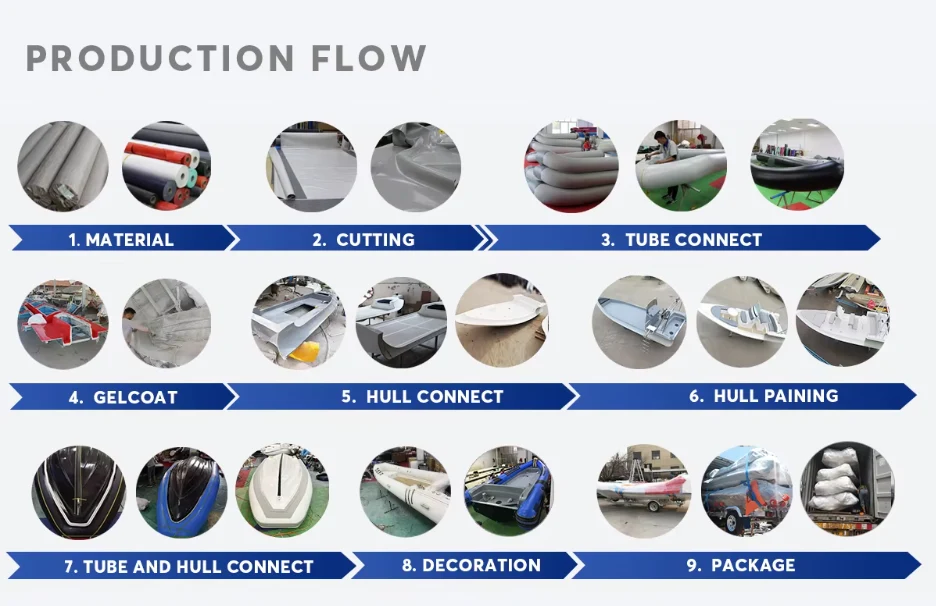 1.Tutti i nostri gommoni semirigidi in fibra di vetro sostitutivi per moto d'acqua sono realizzati con scafo in fibra di vetro di alta qualità e tubo hypalon di grado marino.