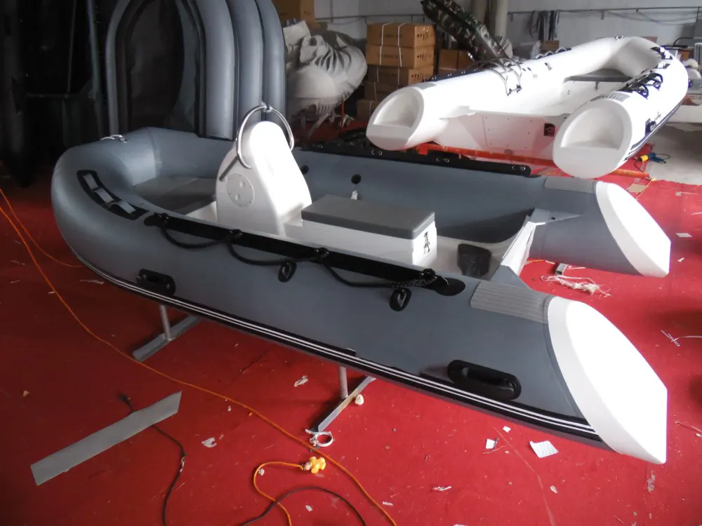 Questo gommone semirigido da 11 piedi sostituisce la moto d'acqua, la cui lunghezza è di 3,3 m, può caricare 14 pezzi in un contenitore da 20 GP. Se si desidera installare il motore con la massima potenza, si prega di comunicare con la nostra fabbrica che è molto importante per la barca.